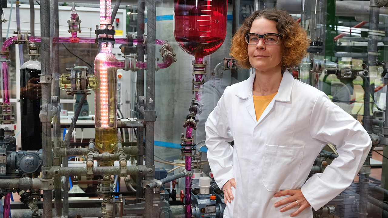 Bei uns im Labor arbeiten wir mit der Thermokatalyse. Aber wir haben auch ein Augenmerk darauf, ob Elektrokatalyse oder Photokatalyse infrage kommt, die Reaktion also durch Strom oder Lichteinfluss in Gang gesetzt werden kann, und ob es vielleicht auch einen Brückenschlag zwischen den Technologien gibt. Viele unserer Reaktionen werden im Technikum durchgeführt, weil wir dort die richtige Infrastruktur haben, um zum Beispiel mit Gasen unter Druck zu arbeiten. Und das machen wir dann so: